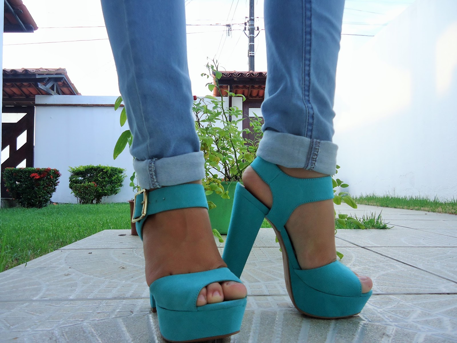Nos pés coloquei esse salto grosso que esta super em alta nessa